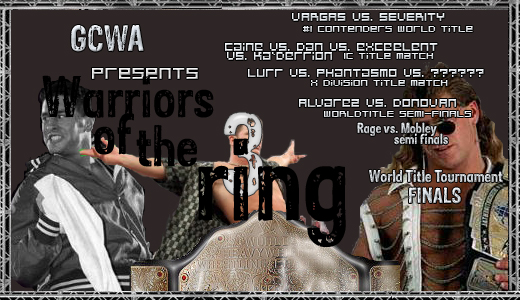 Logan: Ok... so Mr. Excellent seems pretty confident about tonight, but then, you could say that about all four IC Title competitors. That match just might steal the show. However, it's going to have to compete with our next match, the first of the semi-finals of the GCWA World Title Tournament!
