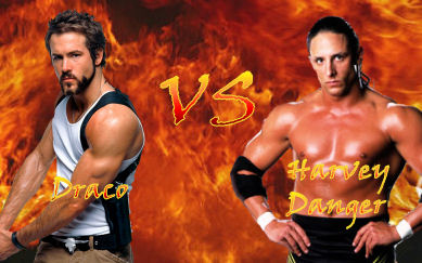 Logan: I’m betting I know who started that rumor, too. *In the ring, Draco has Harvey back up, only to put him right back down with a DDT. Draco then heads for the turnbuckle, thinking about ways he can end this match. He climbs up, showing his amazing balance on the top turnbuckle, as he looks down at Harvey. With a leap, he comes off, going for a double stomp! But Harvey rolls out of the ring at the very last second, and Draco hits nothing but canvas, causing him to do a flip and land on his back, his arms reaching for his now-shaky legs. Harvey pulls himself up, already looking pretty tired from the shots he has taken. This doesn’t stop him from going over to a recovering Draco and double-underhooking the slightly smaller wrestler, taking him face-first to the mat without his arms to protect him! Harvey then rolls Draco over and frantically waves to his ‘girlfriend’ to make the count… 1… 2… and Draco gets his shoulder off the mat, staying alive.*