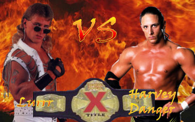 Minos: The next bout is scheduled for one fall with no time limit. It will be fought for the GCWA X Division Championship! Introducing first, the challenger… he is currently one of the GCWA World Tag-Team Champions, and now looks to add more gold to his collection, standing 6’0” and weighing 215 lbs, from New York City, New York, here is Harvey Danger!