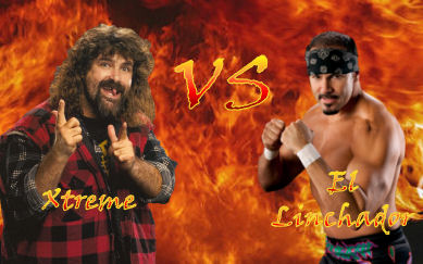 Minos: The next match is scheduled for one fall and has a 10-minute time limit. First, coming out of the back, he is a hardcore wrestler who is intent on passing his message on to the rest of the GCWA… representing Team Santana… standing 6’3” and weighing 280 lbs, from parts unknown, here is Xtreme!