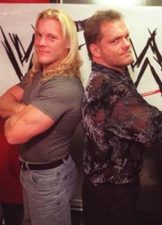 Jericho and Benoit continued to fight it out all across America, usually to the thrill of the fans. Benoit also teamed some with his former allies with the Radicalz, apparently keeping some ties with them. Benoit & Jericho met up at Backlash '00 in a great match, with both men using their submission finishers. In the end, Benoit tried the Swandive, but Jericho put the IC Title up as Benoit fell, causing Benoit to land on it. This caused the DQ win for Benoit. A few days later, Benoit fought a rematch with Jericho. During the match, Benoit became angry with the referee, whom he thought wasn't doing a quick enough count. He shoved the ref out of the ring. This gave Jericho an opening, and he used it, knocking out Benoit with the gold. Jericho then got a Moonsault and made the pin, defeating Benoit and leaving with the Intercontinental Title. A few days later, Benoit & Jericho clashed again, this time with Hunter Hearst Helmsley as the special guest referee. With HHH's help, Benoit got the victory and the IC Title back.