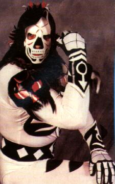 My history is badly sparse on La Parka right now. I do know that the better part of La Parka's career has been in his native land of Mexico. His name, translated, is "Day of the Dead", thus explaining the look of his costume.