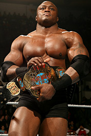Lashley was focused going into the new year, as he couldn't wait to get involved in the Royal Rumble Match to earn a title shot. Fortunately for him, he didn't have to wait, as Lashley was placed in the "20-Man World Title Battle Royal" in the middle of January '06, to decide a new champion (Batista had to vacate due to injuries). Lashley was a powerful presence in the match, eliminating Paul London and Psicosis. But when Lashley tried to match power with "The World's Strongest Man" Mark Henry, he came out on the losing end, getting tossed. Kurt Angle won the match to become the World Champion. A week later, Lashley got his toughest singles match to date, as he took on John Bradshaw Layfield. Thanks to a distraction from the Boogeyman, though, Lashley got the win, landing the Dominator on JBL.