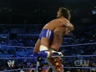 The Frog Splash - In honor of his late uncle Eddie, Chavo now uses the Frog Splash as his usual finisher. Chavo will plant his opponent, then climb the turnbuckle, leaping off with a scissors-like motion to add to his momentum. The impact is usually enough to put a wrestler away for the 3 count.