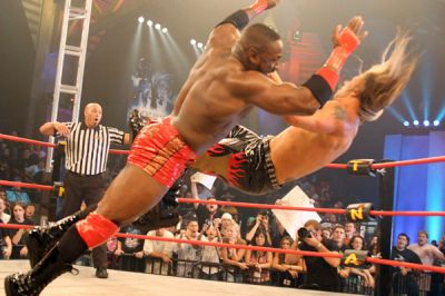 The Pounce - Either as Monty Brown(TNA) or Marcus Cor Von(WWECW), this man can land some serious impact with the Pounce. Cor Von, a former football player, knows how to lead with his shoulder. The end is near when Cor Von whips his opponent into the ropes, then runs to a different set of ropes, getting some momentum. The two wrestlers meet again in the middle, with Cor Von delivering a huge shoulder smash, sending the wrestler flying. Some wrestlers, like CM Punk and Sabu, have nearly left the ring from the impact. Suffice to say, once the Pounce hits, the match is about over.