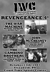 - The Gambino Brothers (Marshall Gambino & Mickey Gambino) retained the IWC Tag-Team Titles, winning a "Four Way" Match over the Cleveland Mafia (Raymond Rowe & J-Rocc), Michael Facade & Johnny Gargano, and Jason Gory & Justin Idol